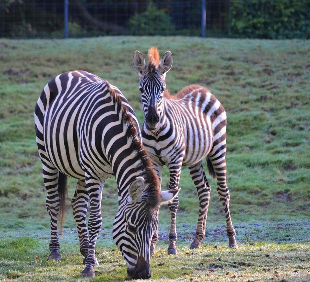 Grant’s zebras generally grow to be 4-5ft tall, and weigh between 500-700 pounds. Grant’s zebras live an average of 20 years. The males on average are 10% larger than their female counterparts. Zebras have excellent eyesight and hearing, and can run up to 40 mph. Each zebra’s stripes are unique. Just as no two human fingerprints are alike, no two zebras have the same stripe pattern.
